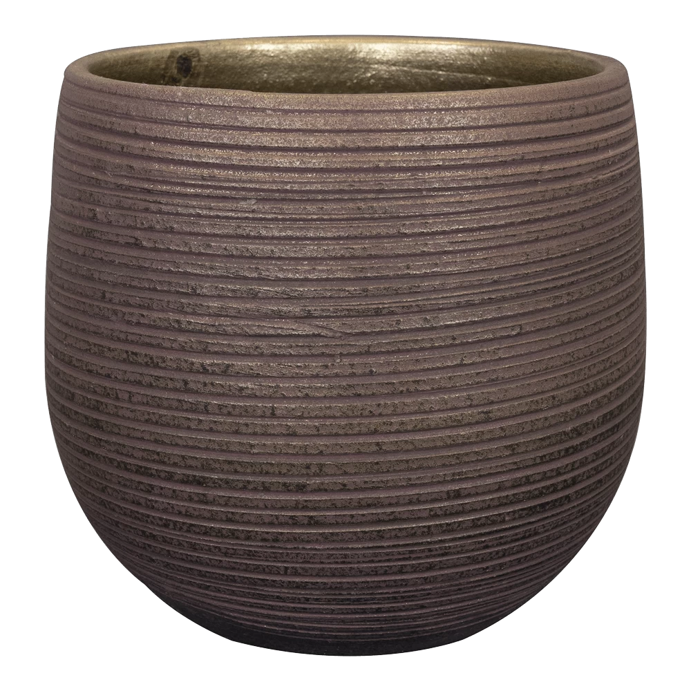 Kijk eens naar deze stijlvolle pot met mondaine uitstraling. Het vrijzinnige streeppatroon brengt kalmte met een knipoog naar sjiek. De binnenkant is goudkleurig. Pottenbakkers in Portugal maken deze serie van TS Collection nog traditioneel gemaakt. Dat gebeurt op draaiplateaus, met de handen. Vervolgens wordt de textuur aan de buitenkant met een speciale tool aangebracht. Daarna wordt de pot gebakken en vervolgens, ook handmatig, gespoten in de juiste kleur. Er is keuze uit frisse, flitsende kleuren volgens de laatste trends.