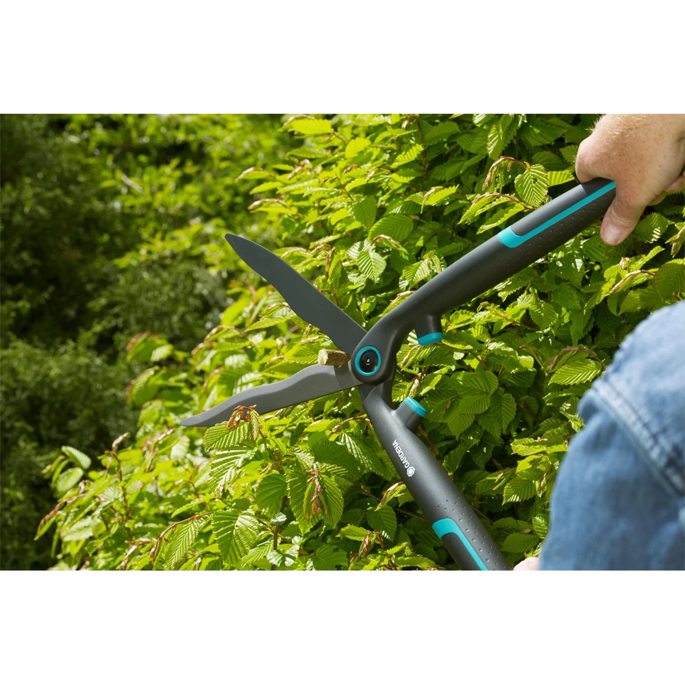 Als u uw heg comfortabel en uiterst efficiënt wilt snoeien, komt de EasyCut van GARDENA zeker van pas. De hoge standaard van de schaar wordt bevestigd door de hoge kwaliteit. U ervaart de kwaliteit zodra u de heggenschaar oppakt. De ErgoTec handgrepen liggen perfect in uw handen dankzij hun uitgebalanceerde vorm en geweldige ergonomie. Bovendien heeft de heggenschaar een zachte buffer, die voor goede demping zorgt en bijdraagt aan het comfort. U zult onder de indruk zijn van het lage gewicht van de schaar, die wordt bereikt door het gebruik van zeer duurzaam vezelversterkt kunststof. De kunststof handgrepen bieden een stevige houvast zodat elke snede telt. Door de combinatie van al deze functies kunt u langer werken zonder moe te worden. De innovatief ontworpen gekartelde rand van de messen voorkomt dat takken of twijgen van de messen wegglippen. De gekartelde rand zorgt voor bijzonder veel efficiëntie, vooral bij het werken op grotere oppervlakken. De EasyCut is een echte alleskunner, ongeacht of u uw heg snoeit, de bladeren van een struik snoeit of een tak snijdt.