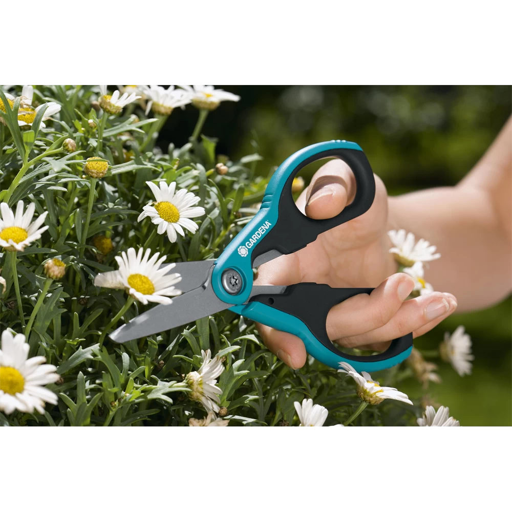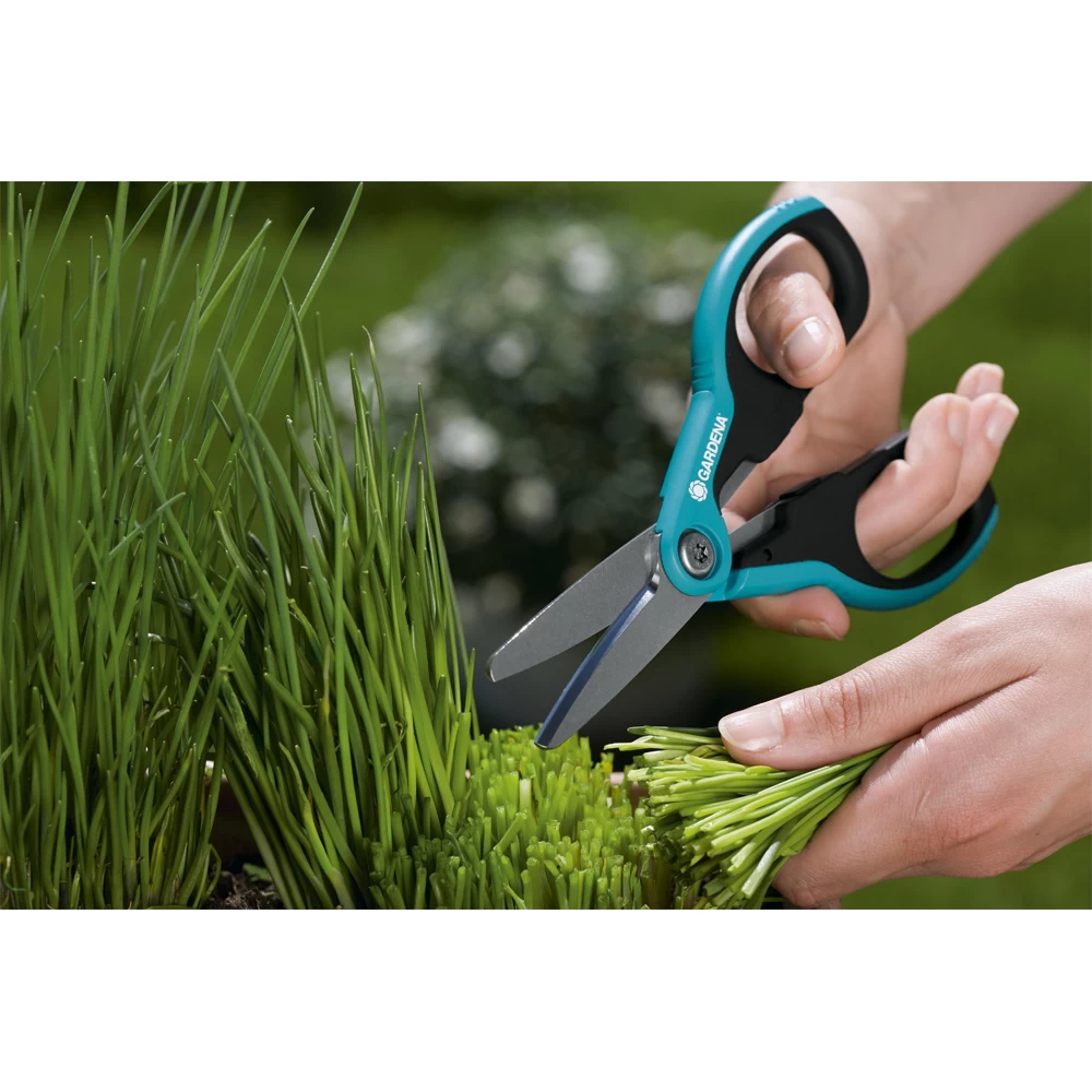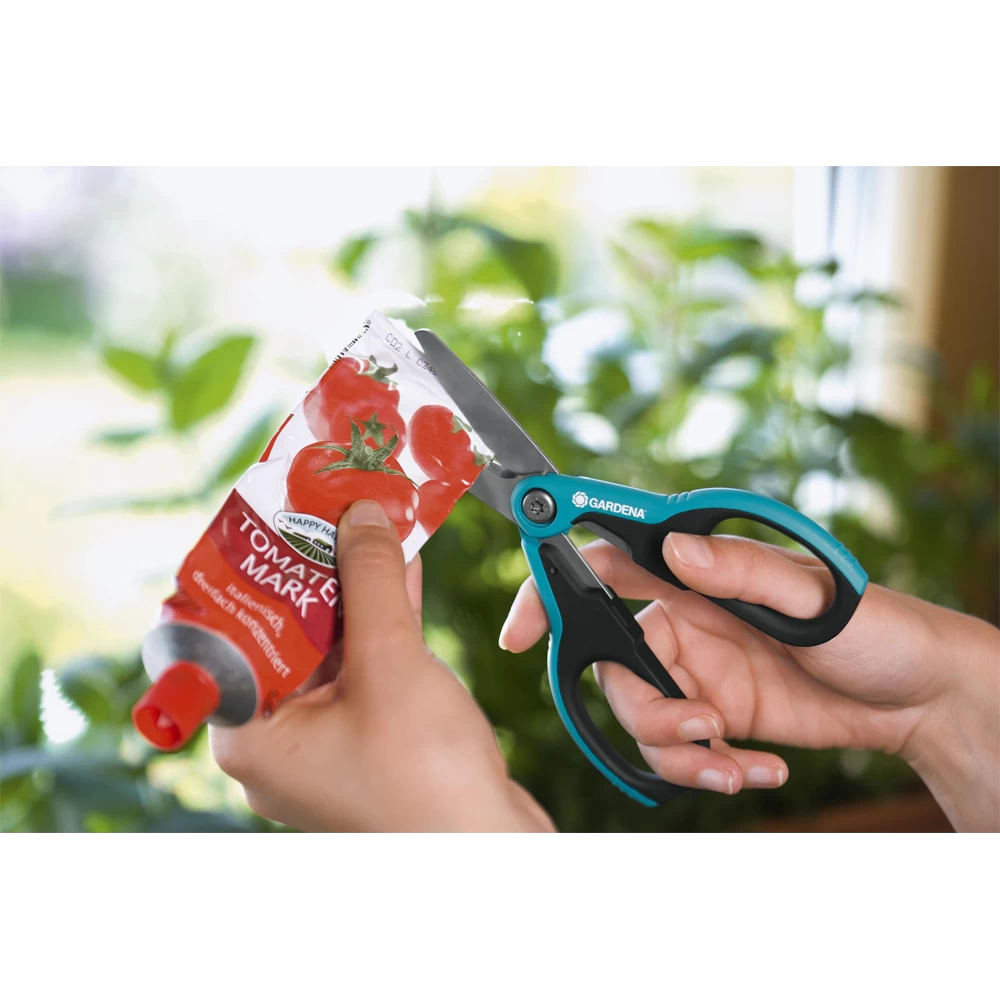 De GARDENA multifunctionele schaar is een handige, universele schaar die prettig in gebruik is. De schaar is uitermate geschikt voor gebruik in de keuken en in de tuin. De schaar is ideaal voor het knippen van bloemen, kruiden, koord, metaaldraad, karton en kunststof. De speciaal geslepen messen zijn gemaakt van roestvrij staal. Praktisch: de GARDENA multifunctionele schaar kan in de vaatwasser worden gewassen. Door het ergonomische ontwerp en de handgrepen met zachte elementen werkt de schaar comfortabel. De schaar kan door linkshandige en rechtshandige mensen worden gebruikt en heeft een totale lengte van 180 mm.