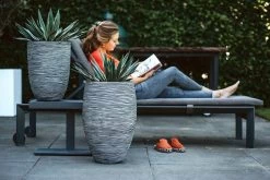 Capi Bloempot Hoog Nature Elegant Deluxe Rib NL – D56 X H84cm – Donkergrijs